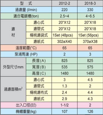 電鍍液過濾機(jī)參數(shù)表: