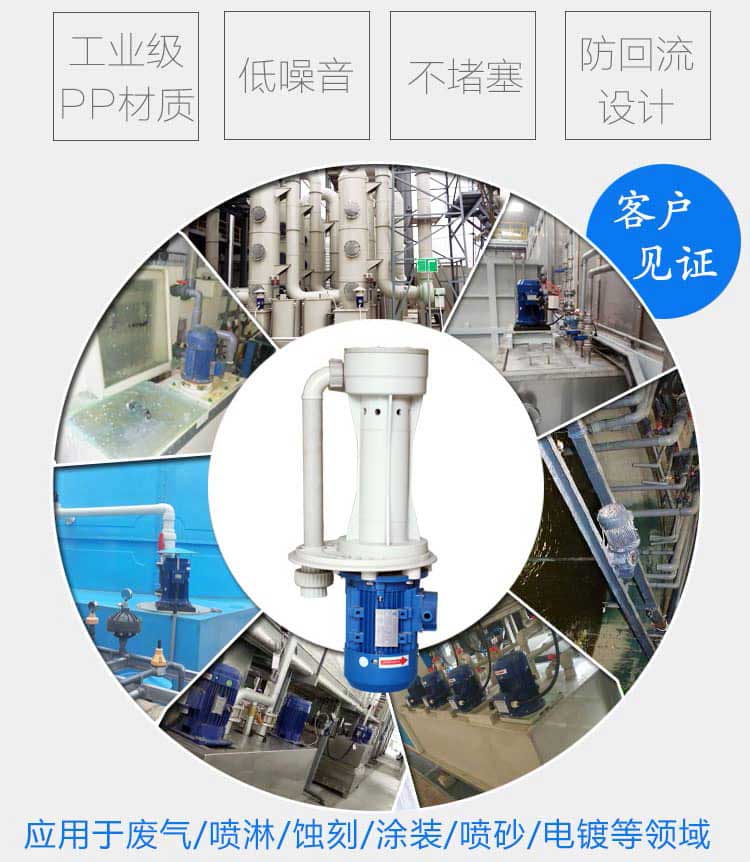 適合各種酸堿液循環(huán),冷卻,噴洗設(shè)備,廢氣塔、蝕刻線、廢水處理使用。